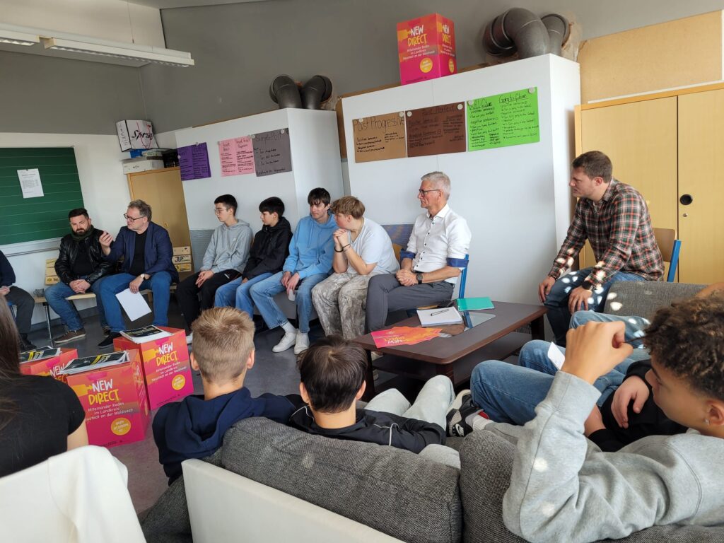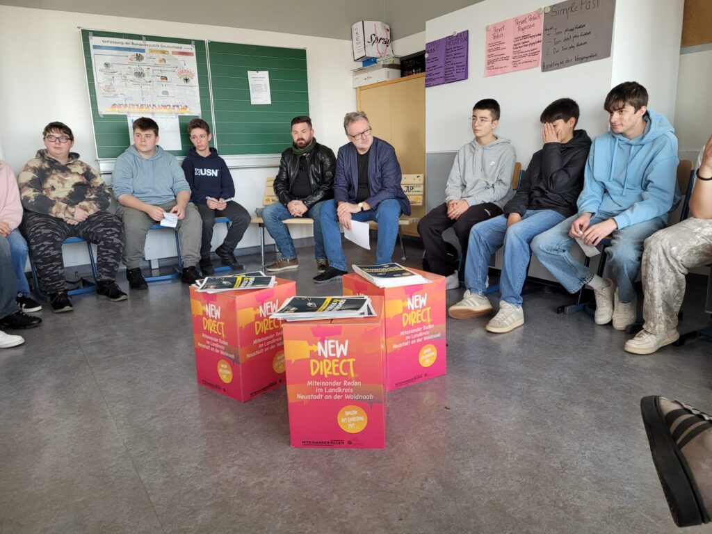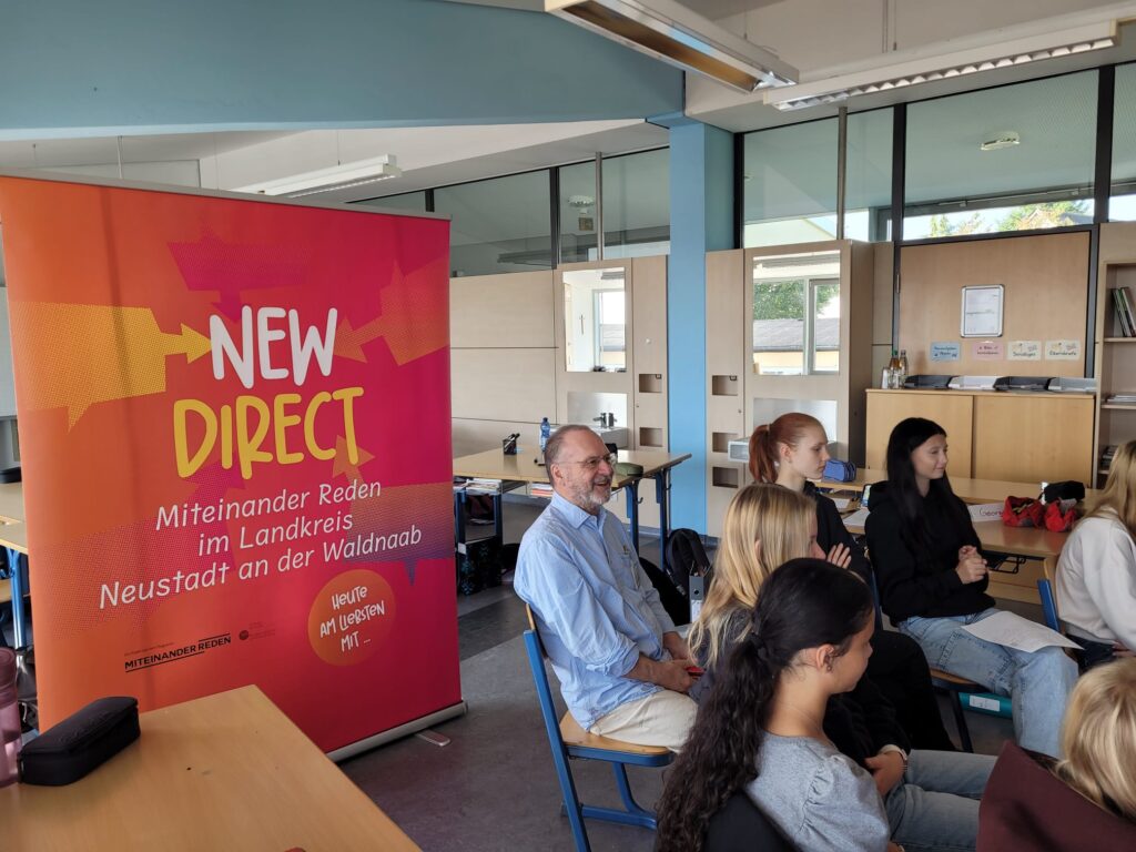 Am Montag, den 29.09.2025, kam der Bürgermeister von Neustadt an der Waldnaab, Sebastian Giering, im Rahmen des Projekts „Miteinander reden“ in die Klasse M9. Er wurde von zwei Vertretern des Kreisjugendrings begleitet. Organisiert wurde das Projekt von Frau Rübe-Hitzinger.
